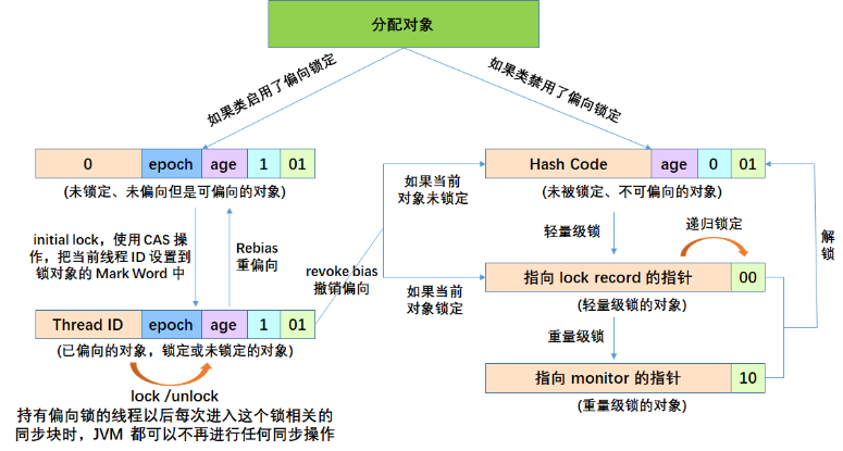 - 等待,Object.wait(),释放当前线程持有的锁,唤醒后重新抢锁